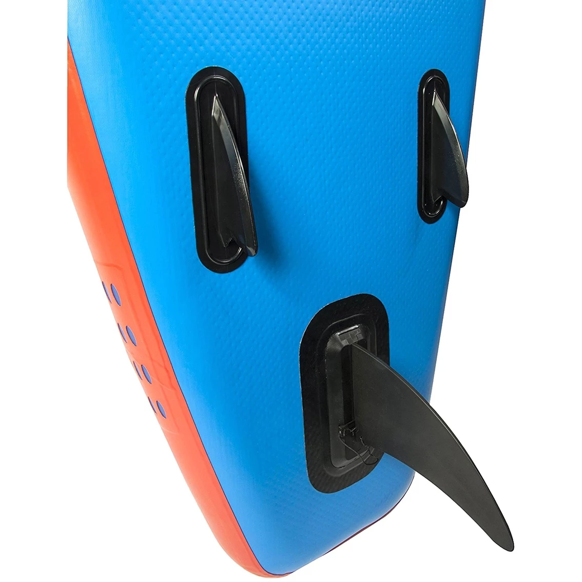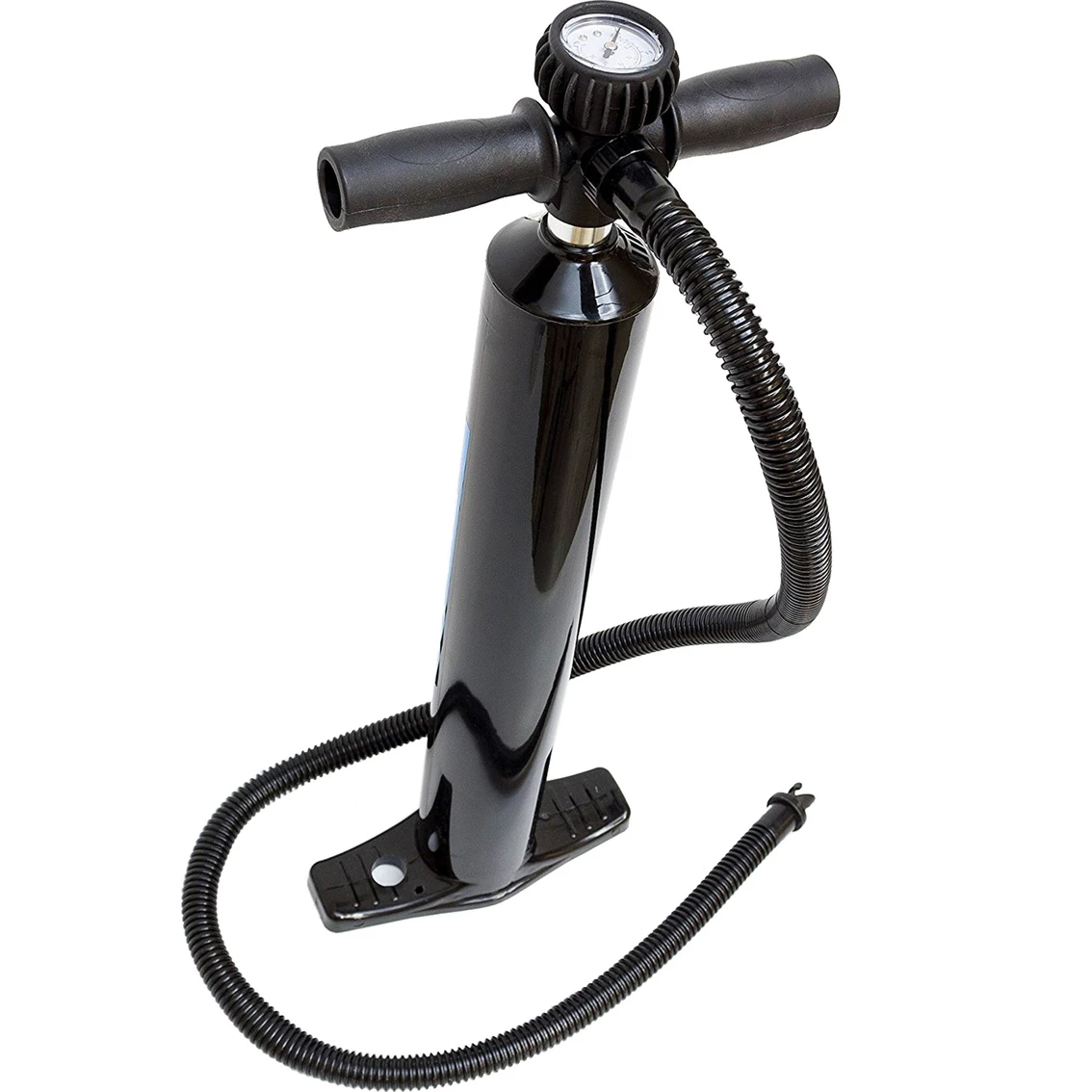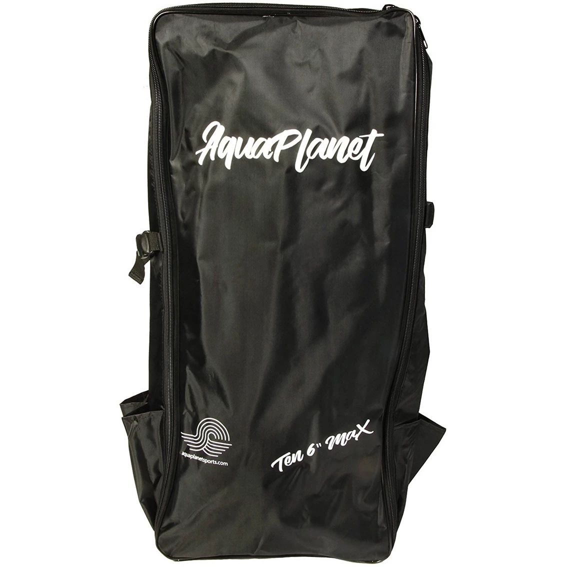 The Aquaplanet 10 ft. 6 in. x 15 cm Pace Stand Up Paddleboard comes with a hand air pump with pressure gauge. It also includes an adjustable aluminum floating paddle, repair kit, rucksack, coiled leash and 4 kayak seat ring fittings. Model: SS-002.