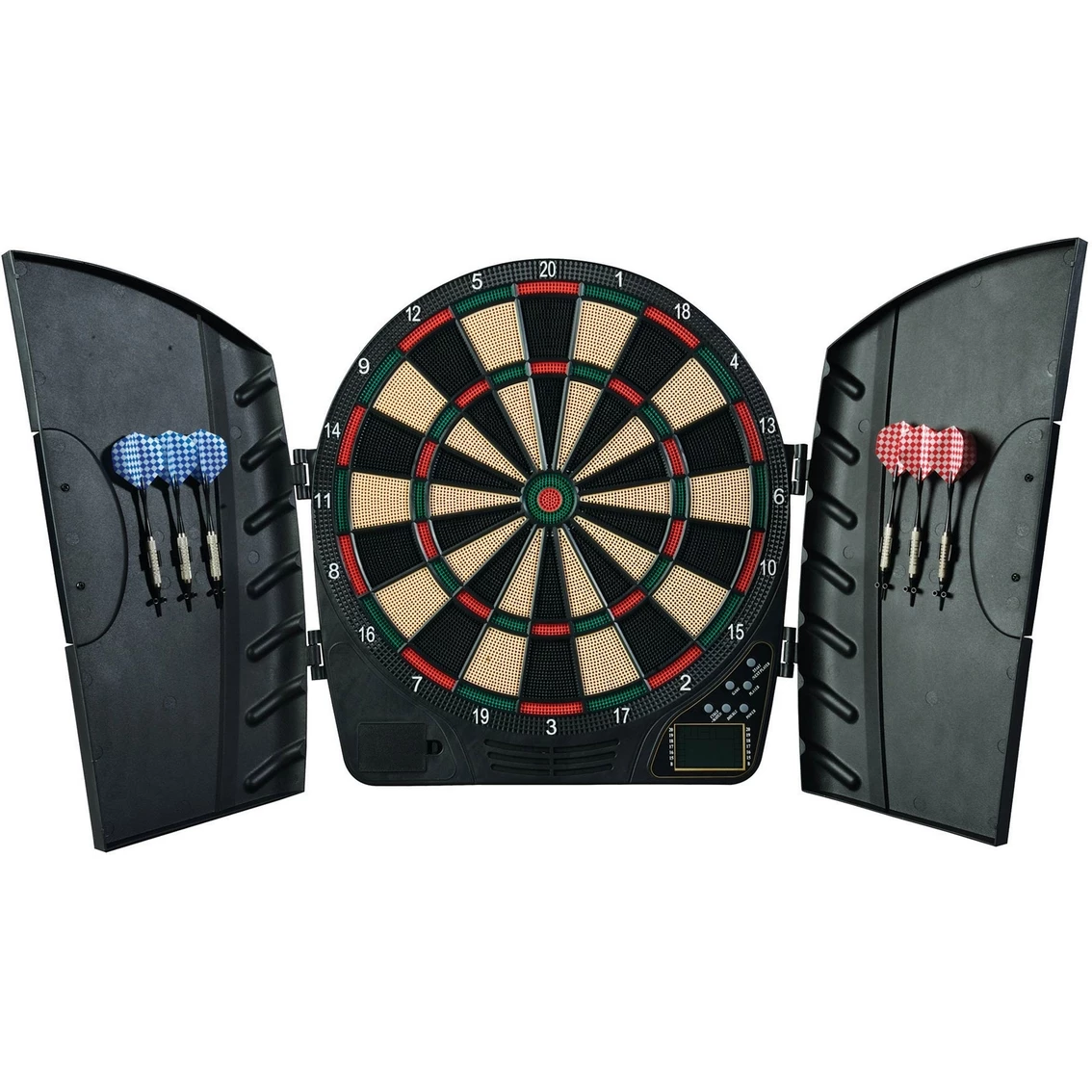 The Franklin Sports FS 3000 Electronic Dartboard features up to 90 game variations. This 13.5 inch dartboard comes ready to play with 6 soft tip darts.