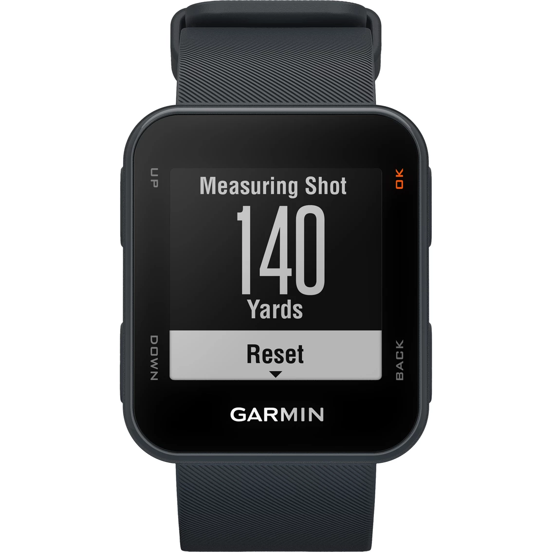 Based on your location, the easy-to-use Approach S10 Golf Watch from Garmin automatically chooses the course youβre playing from more than 41,000 preloaded courses worldwide with free lifetime updates. Then it provides yardages to the front, back and middle of the green as well as hazards and doglegs. Complete a hole, and it automatically transitions to the next hole as you walk from the green to the next tee box. And if you really crush one, you can measure the distance for bragging rights. Black. Model: 010-02028-00.