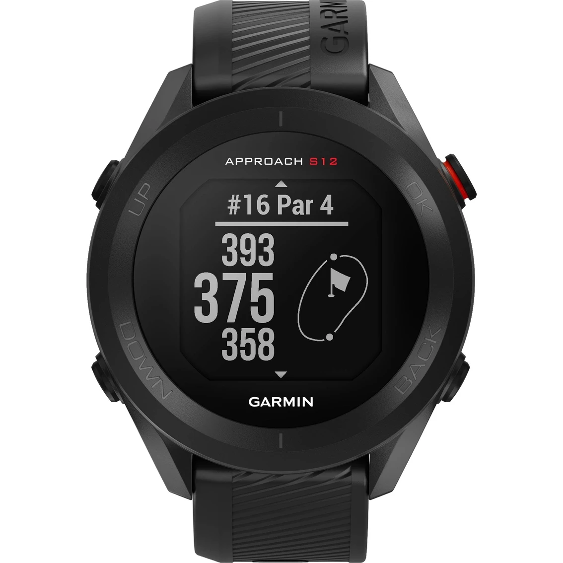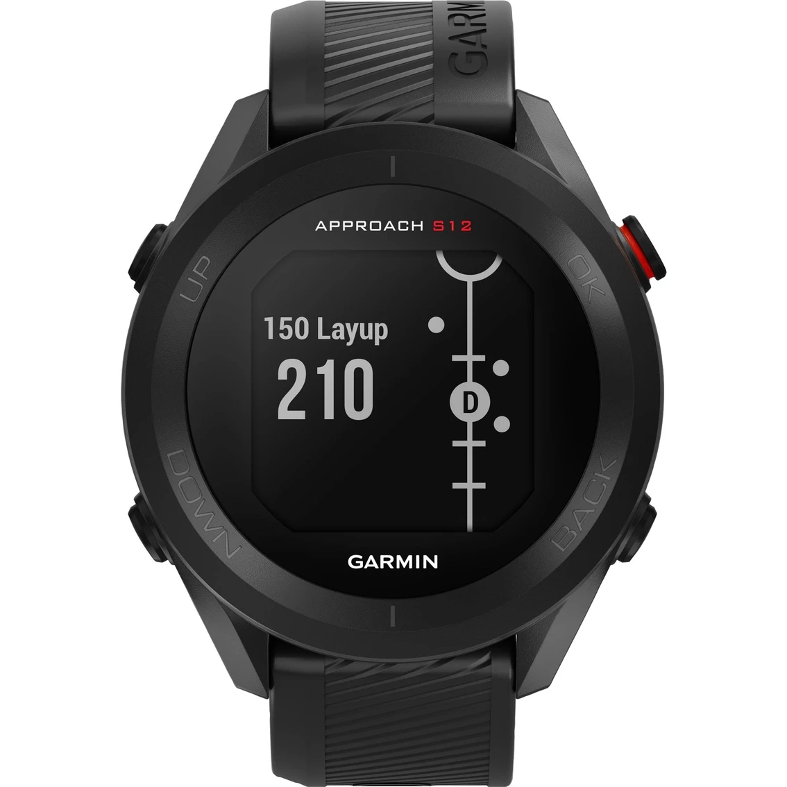 Garmin has got your game with Approach S12, a golf watch designed to turn on when you tee off. Get key yardages to the green, as well as to hazards and doglegs, on 42,000 preloaded courses worldwide. Keep score from the watch itself and upload directly to the Garmin Golf app (when paired with a compatible smartphone) to participate in weekly leaderboards. Pair with optional Approach CT10 club tracking sensors (sold separately) for more automatic game tracking capabilities. Play longer with a battery life that holds up — get up to 15 hours in GPS mode. Model: 010-02472-00.