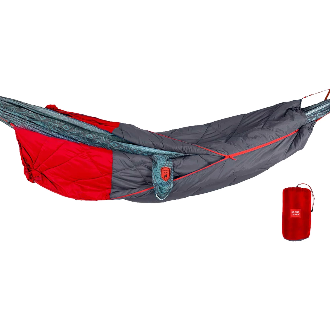 The 360 ThermaQuilt completely wraps around any GrandTrunk hammock and cinches at the ends to keep the warm air in. Or lay it flat to use as a blanket or traditional sleeping bag.