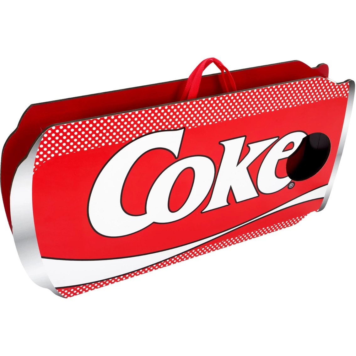 The Hey! Play! Coca Cola Cornhole Outdoor Game Set is the ultimate yard game played at tailgates, picnics, beaches and backyards. Anyone of any age and skill level can play this family-friendly game that is becoming more and more popular. This set comes with 2 wooden Coke can-shaped cornhole toss boards and 8 bean bags. Model: M350024.