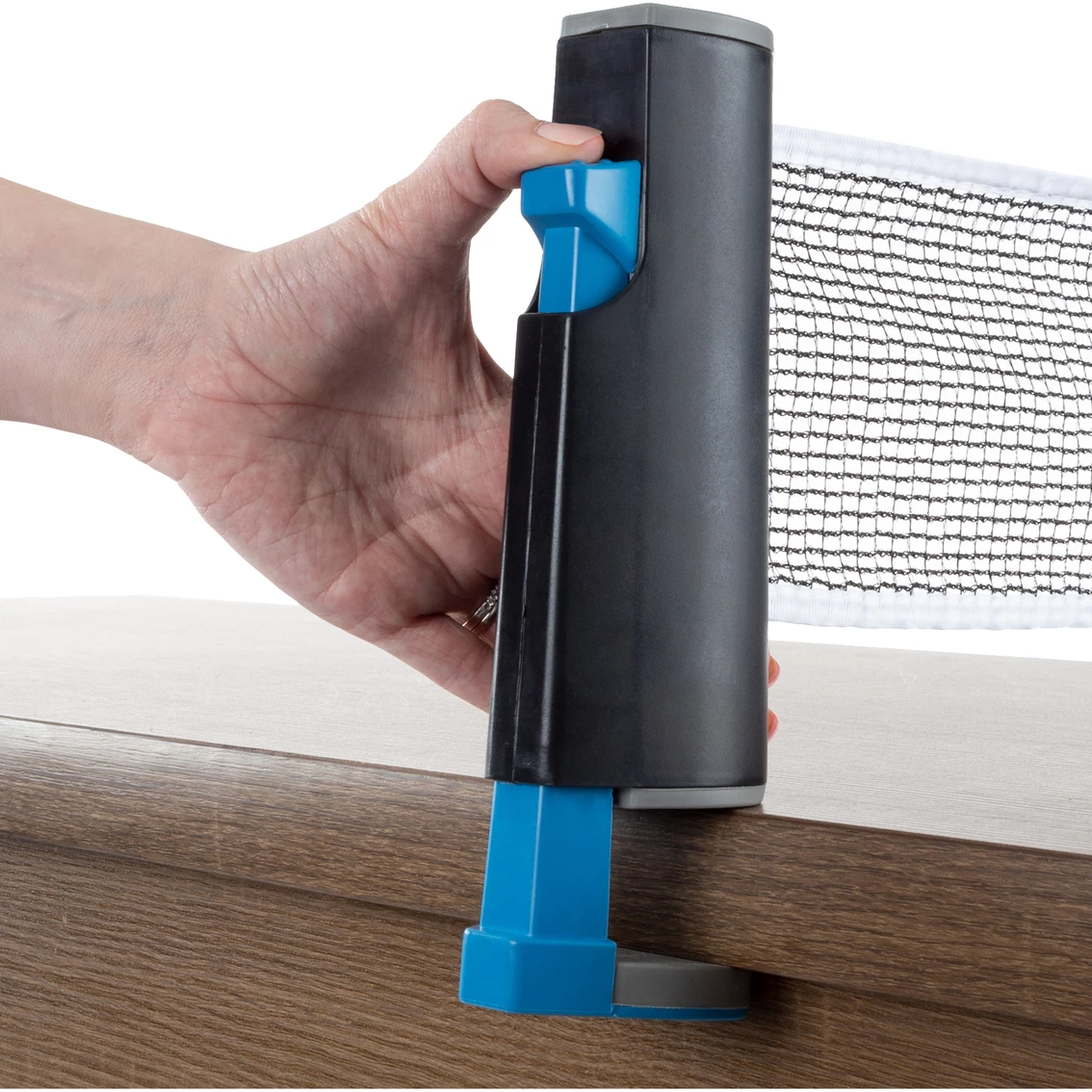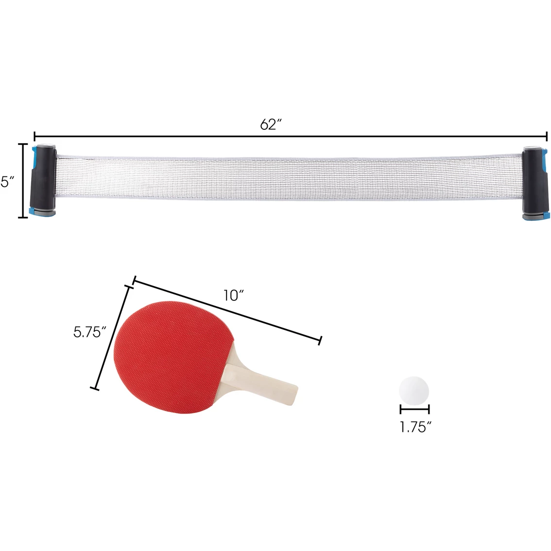 Turn any surface into a ping pong table with the Portable Instant Table Tennis Set by Hey! Play! This set includes everything you need to set up a table tennis game almost anywhere. The net extends up to 62 inches long and secures to any table with the convenient levers. The two paddles are made of sturdy poplar wood to handle daily play, and the three included ping pong balls ensure that you’re always ready for a game. This instant table tennis set is fun for both kids and adults and is great to take to parties, picnics and gatherings with friends. This instant table tennis set is great to use just about anywhere. The net secures to any table with the built-in levers to set up a friendly game or competition at parties, picnics or gatherings with friends. The net extends up to 62 inches long, making it great to use on just about any table or other flat surface. The net also retracts into one of the posts for easy and convenient storage or travel.