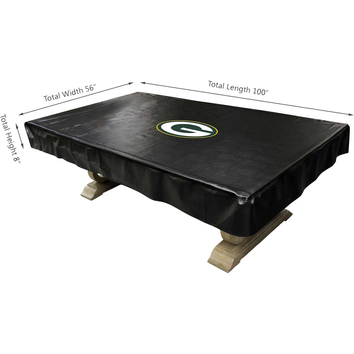 Show your team spirit even when you’re not playing. The NFL Officially Licensed Billiard Table Cover is a great way to show your loyalty to your team while protecting your table from dirt. This high quality Naugahyde cover covers fits most standard 8-ft. tables. Measures 56 in. W x 100 in. L. Team logos are silk screened in the center using vibrant inks to make sure your team’s logo looks great for many years.