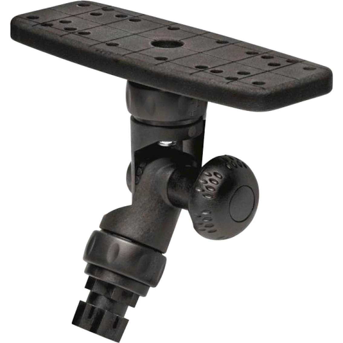 This 3 axis mount has friction joints top and bottom featuring R-Lock lockable joints (pat pending). The center joint is fully adjustable in 15-degree increments. Will take fish finders up to 1.5kgs (3.3 lb.) Mount on an angled surfaces and have your display level! Base not included.