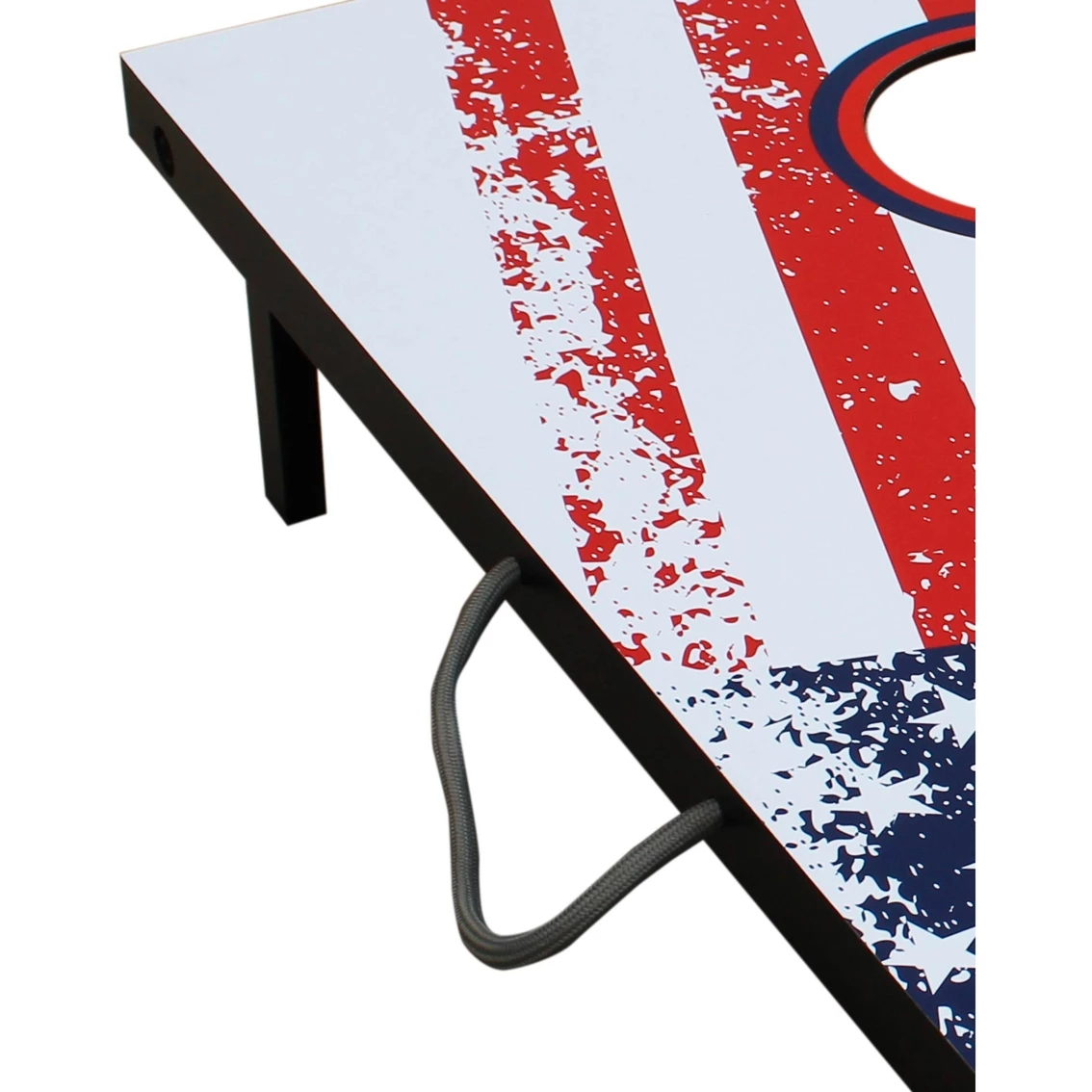 Show all the other fans your true colors with this Patriotic Bag Toss! Perfect game for dedicated tailgaters! Two Game Platforms. Eight 6 x 6 in. bags (4 red, 4 blue). Convenient carrying handles. Water Resistant Frame. Heat transferred no-peel laminate top. Model: 35-7266.