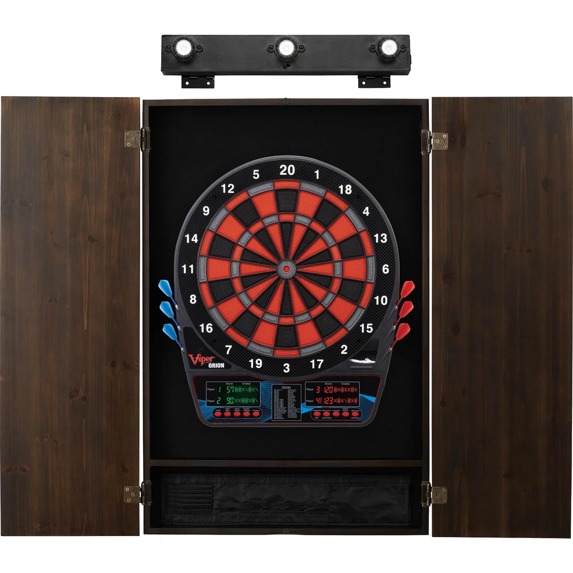 Shoot for victory with the Viper Orion Electronic Dartboard, Metropolitan Espresso Cabinet and Shadow Buster Dartboard Light Bundle! This high-tech bundle boasts the latest innovations in competitive darts and is sure to bring your game out of this world!