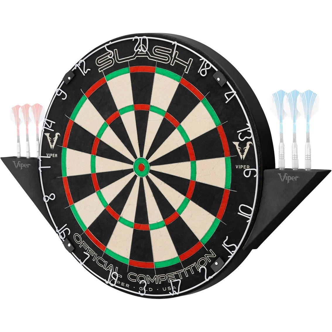 The brand new flagship Sisal dartboard from Viper is their most advanced dartboard yet. The Viper Slash is constructed from the highest grade African sisal fibers, compressed to the highest density possible. These bristle fibers give the Slash its self-healing properties, holes left from dart points seal back to pristine condition. The ultra dense sisal allows us to include the thinnest razor wire we’ve ever had on a bristle board. This razor wire increases the scoring area of each segment for higher scores and less bounce outs for a fast-paced game without stopping play. The razor-thin wire and bullseye are free of traditional staples that can interfere with your game and cause bounce outs. Prepare for tournament play with the Slash, its regulation size of 17.75 in. (451 mm) matches perfectly with high level event boards. Model: 42-6015.