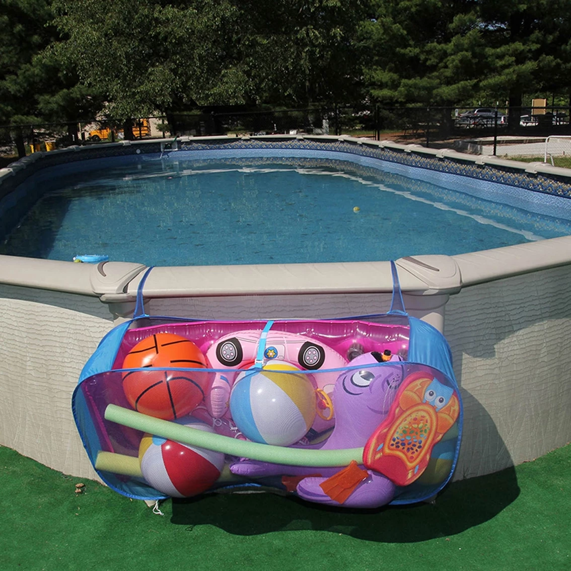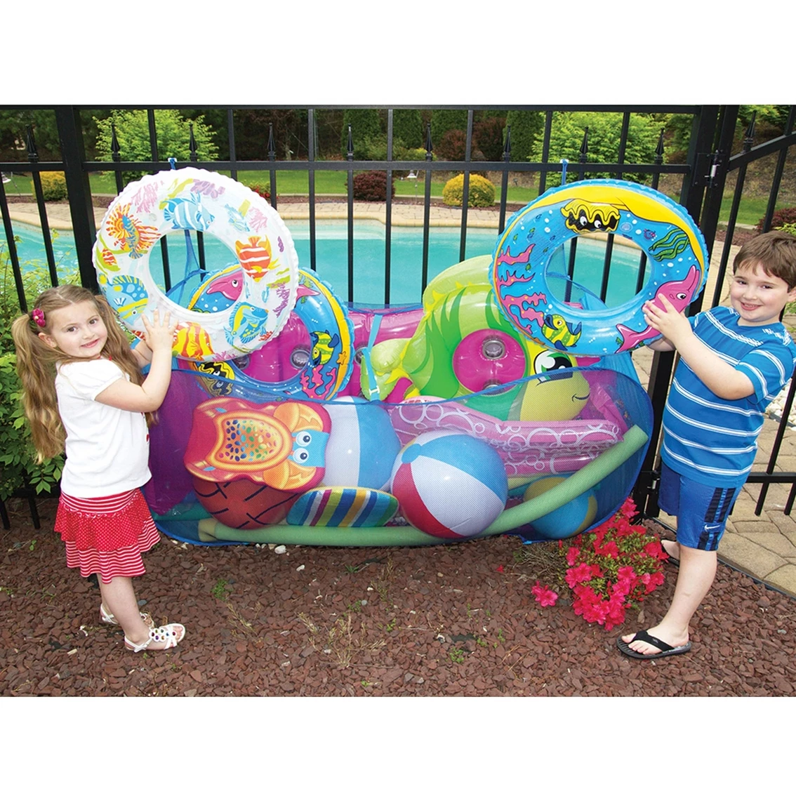 The Water Tech Pool Pouch is a handy organizer that easily stores all pool, patio and backyard accessories. Water Tech, the source for the latest in pool innovation ideas has conquered the ubiquitous problem of curtailing clutter and freeing up space in and around your aquatic landscaping with the space management Pool Pouch. A skillfully engineered durable, lightweight and practical application, the Pool Pouch easily stores and organizes all pool, patio and backyard accessories: small toys, beach balls, inflatable rafts, etc. It compliments any pool’s decor as well. Pool and spa toys and other playthings that litter the pool area can now be kept at arm’s reach in a highly functional organizer and carrier. Model: 60A0104.