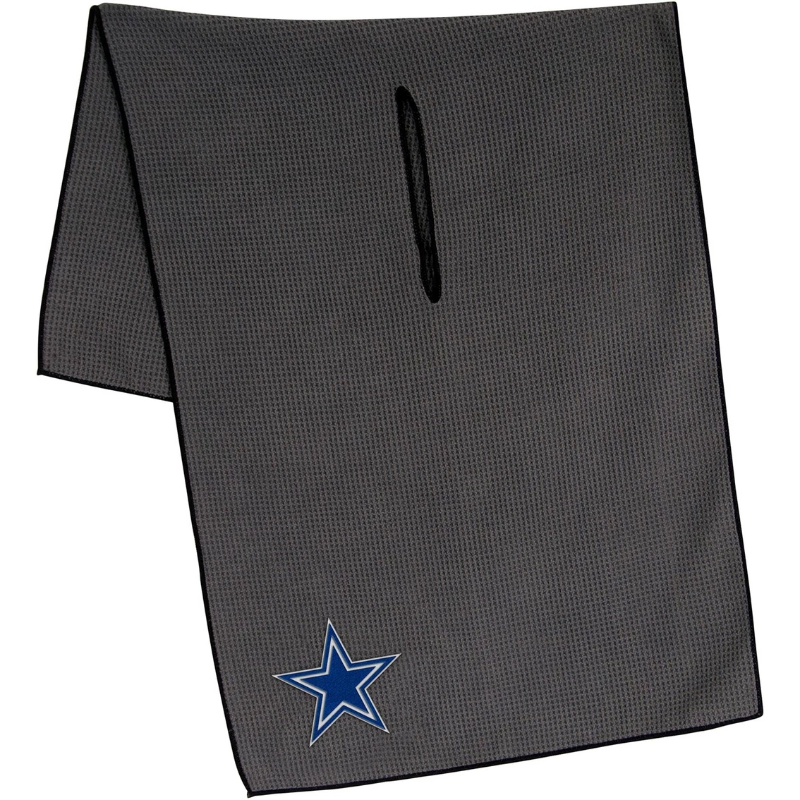 Absorbent and durable, this microfiber golf towel from WinCraft features an embroidered trademark of your favorite NFL team. The towel has a waffle weave that cleans without scratching the finish on your golf clubs. Measuring 19 in. x 41 in., the towel is large enough that you can keep part of the towel wet and part of the towel dry. An 8-in. center slit fits easily over clubs. Packaged with header card. All teams may not be available.